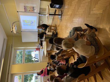 Am 17. Oktober war es wieder soweit - der Fredericktag 2025 stand an. Hier geht es rund im die Faszination des Lesens. Bei uns war dieses Jahr die Autorin Julie Leuze zu Gast. Begeistert hörte die Kinder ihr beim Vorlesen Ihres Kinderbuches "Hier kommt Kalli Wüstenmucks" zu, bei dem ein kleines blaues Wesen plötzlich im Leben von Leo auftaucht und ganz viel Chaos mit sich bringt.